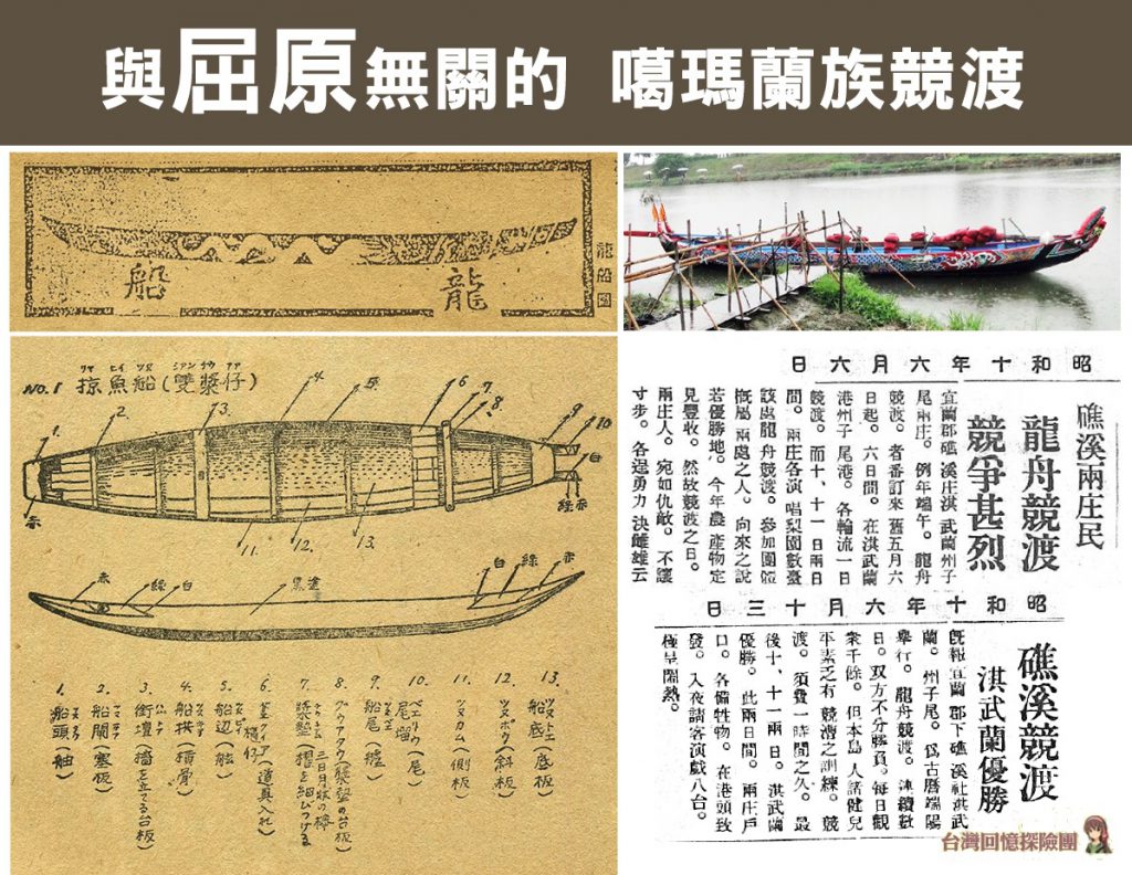 從古早民俗記錄、報章報導來看,都有記載紀念屈原的習俗。不管史實上的屈原是不是真的存在過,紀念屈原的習俗是漢文化傳入臺灣的現象,無需否認。但除了屈原以外,我們也可以多了解以目前已知線索推斷很可能源自原住民習俗的二龍河競渡。
