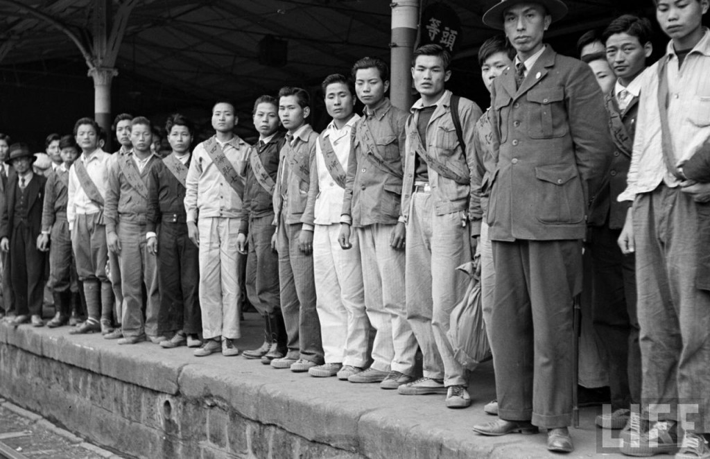 圖:中華民國政權逃來臺灣後大舉徵兵,準備服役的人在火車站等車。(來源:LIFE)