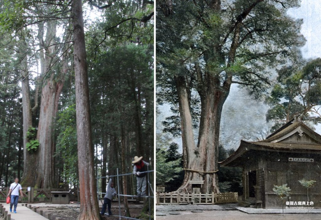 嘉義 1919.4.25 阿里山神社鎮座 2018 年 04 月 24 日 admin 阿里山神社原址位於阿里山萬歲檜(今千歲檜)旁,1919(大正8)年4月25日鎮座,戰後遭拆除,現已不存。 圖:阿里山神社今昔 2016 vs 日本時代 感謝 臺灣古寫真上色 提供 歡迎加入Facebook台灣回憶探險團,一起來一場回憶探險吧!