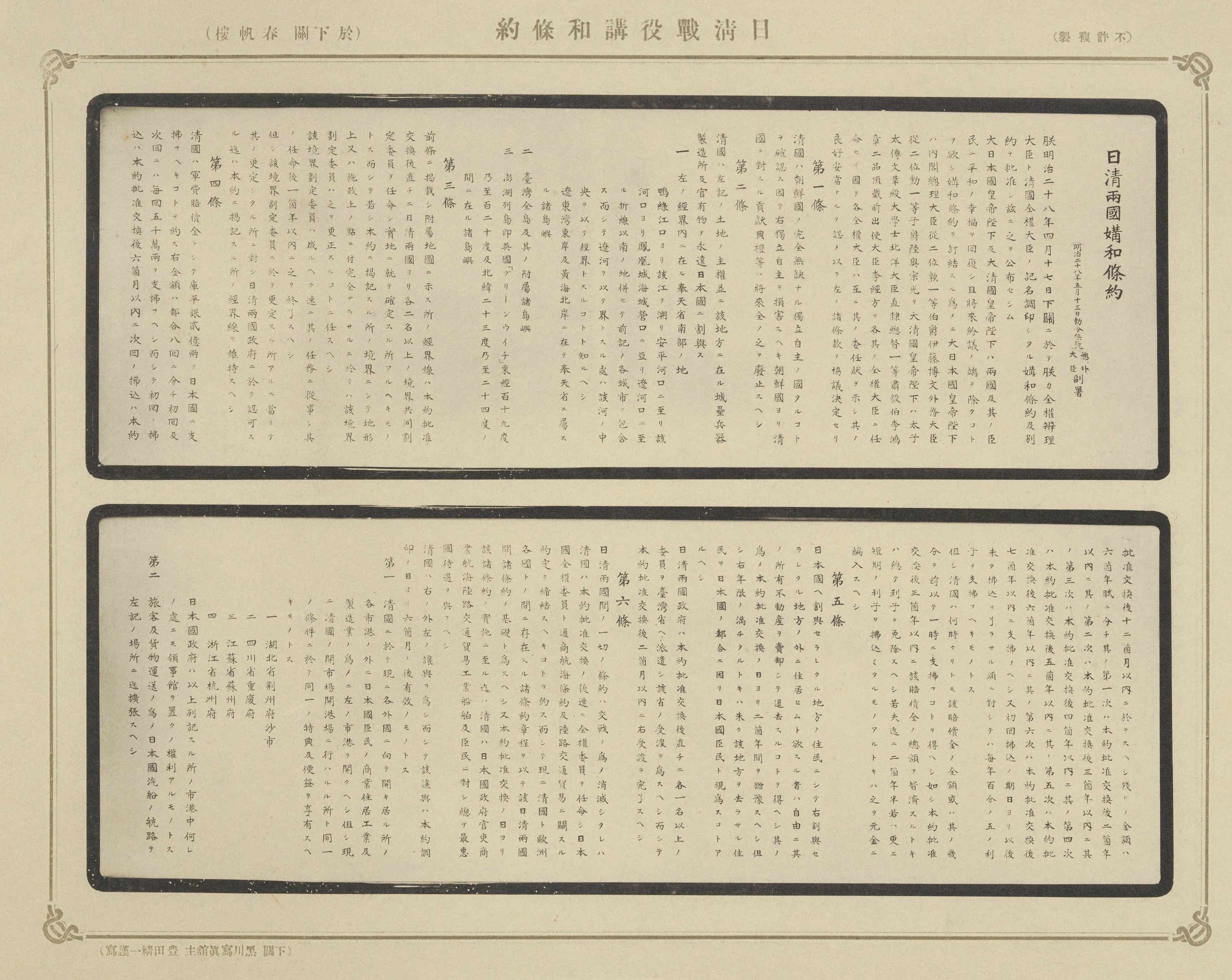 1894年日清戰爭爆發,清國失利,與日方交涉和談,幾經波折終於在1895年4月17日於日本馬關港旁春帆樓簽署馬關條約(下關條約、日淸媾和條約),條約中確認了臺灣澎湖由清國讓與日本的命運。當時許多臺灣人無法接受,認為清國在別的地方戰敗,竟要割讓臺灣。當時的情境用現代熟悉的用語來描述,大概就是臺灣人以為反正日清戰爭離自己很遠,那些世局紛擾都是「假議題」,每天拚經濟顧腹肚乖乖過日子就能永遠維持現狀,卻沒想到離這個島嶼千里之外的春帆樓中(如圖),兩個帝國正在決定自己的命運。